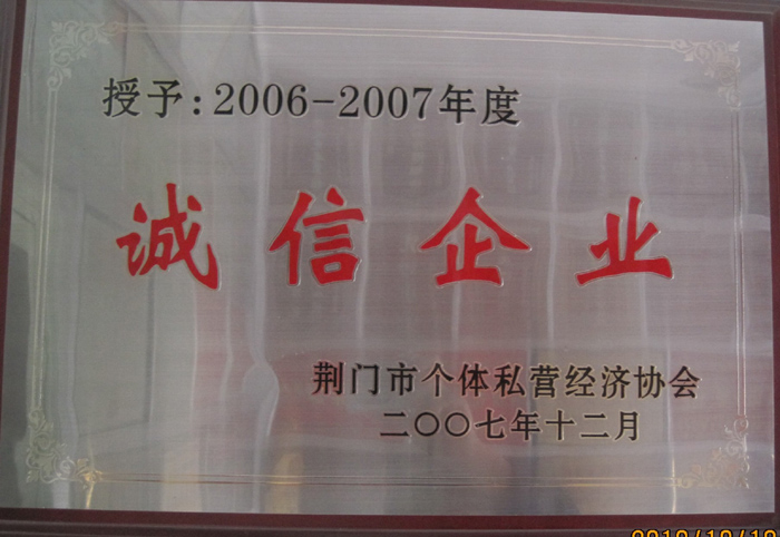 2007年12月被授予2006-2007年度誠信企業(yè)