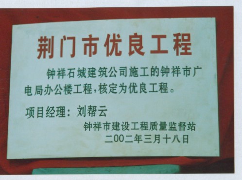 2002年3月施工的鐘祥市廣電局辦公樓核定為優(yōu)良工程