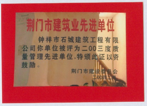 2004年5月湖北省建筑業(yè)“先進(jìn)單位”