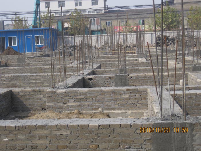 工程概況 本工程為鐘祥市郢中街道辦事處王家灣社區(qū)房屋拆遷安置點(diǎn)住宅小區(qū)工程二標(biāo)段,本標(biāo)段共8棟,其中住宅樓1#為3棟,磚混結(jié)構(gòu)六層;住宅樓2#為3棟,住宅樓3#為2棟,一、二層為框架結(jié)構(gòu),三至六層為磚混結(jié)構(gòu)。 一、基礎(chǔ)工程結(jié)構(gòu)概況 1、住宅樓1#基礎(chǔ)采用采用預(yù)應(yīng)力高強(qiáng)度混凝土(PHC)管樁,樁長(從自然地面起)18-21m,樁端進(jìn)入第6層砂礫夾卵石大于1.0m,樁徑為300mm。 2、住宅樓2#、3#基礎(chǔ)采用預(yù)應(yīng)力高強(qiáng)度混凝土(PHC)管樁,管樁規(guī)格PHC-A300-70,樁長(從自然地面起)18-21m,樁端進(jìn)入砂礫夾卵石大于1.0m。 二、主體結(jié)構(gòu) 住宅樓1#為六層磚混結(jié)構(gòu),主體結(jié)構(gòu)混凝土強(qiáng)度等級均為C25,正負(fù)零以下采用MU20水泥標(biāo)準(zhǔn)磚,M10水泥砂漿砌筑,架空層采用MU15水泥多孔磚,M10混合砂漿砌筑。主體一至六層采用MU15水泥 多孔磚,M10水泥砂漿砌筑。 住宅樓2#、3#室內(nèi)外高差為15cm,底層混凝土強(qiáng)度等級為C30,二至六層為C20。2.18m以上為MU15水泥多孔磚,M10水泥砂漿砌筑,2.18m以下為MU20水泥標(biāo)準(zhǔn)磚,M10水泥砂漿砌筑。
